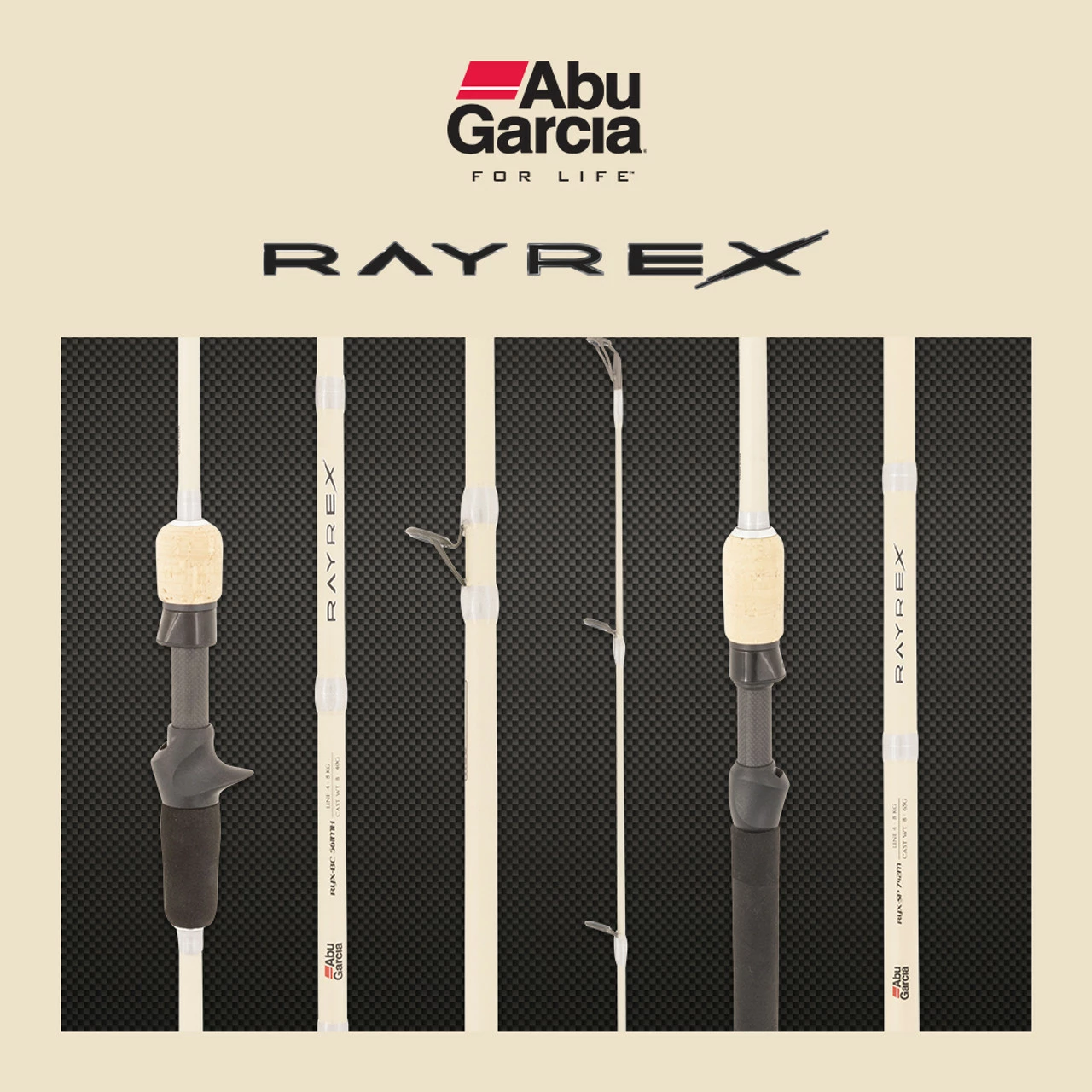 - The Abu Garcia Rayrex II series of rods set the value benchmark for both lure casting and bait fishing techniques. The HSC (High Strain Composite) blanks are light, super crip to cast and give the angler constant feedback to the hand with the Abu Garcia skeletal reel seat design. Additionally, Rayrex II are fitted with high quality Fuji K-frame guides with Fazlite inserts for superior casting and line management. Combine all these features with a killer new cosmetic and three additional models, youre sure to find a rod to cover any fishing scenario.