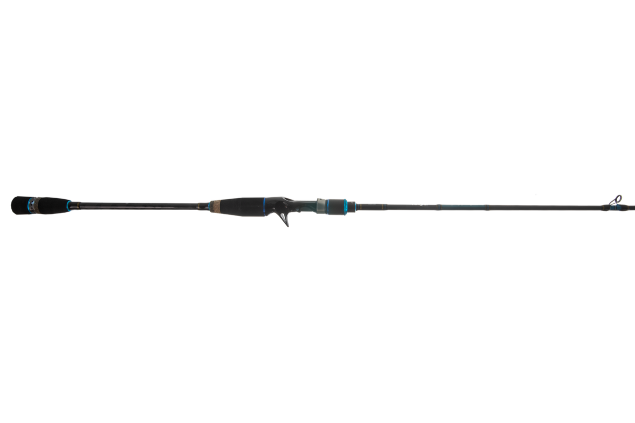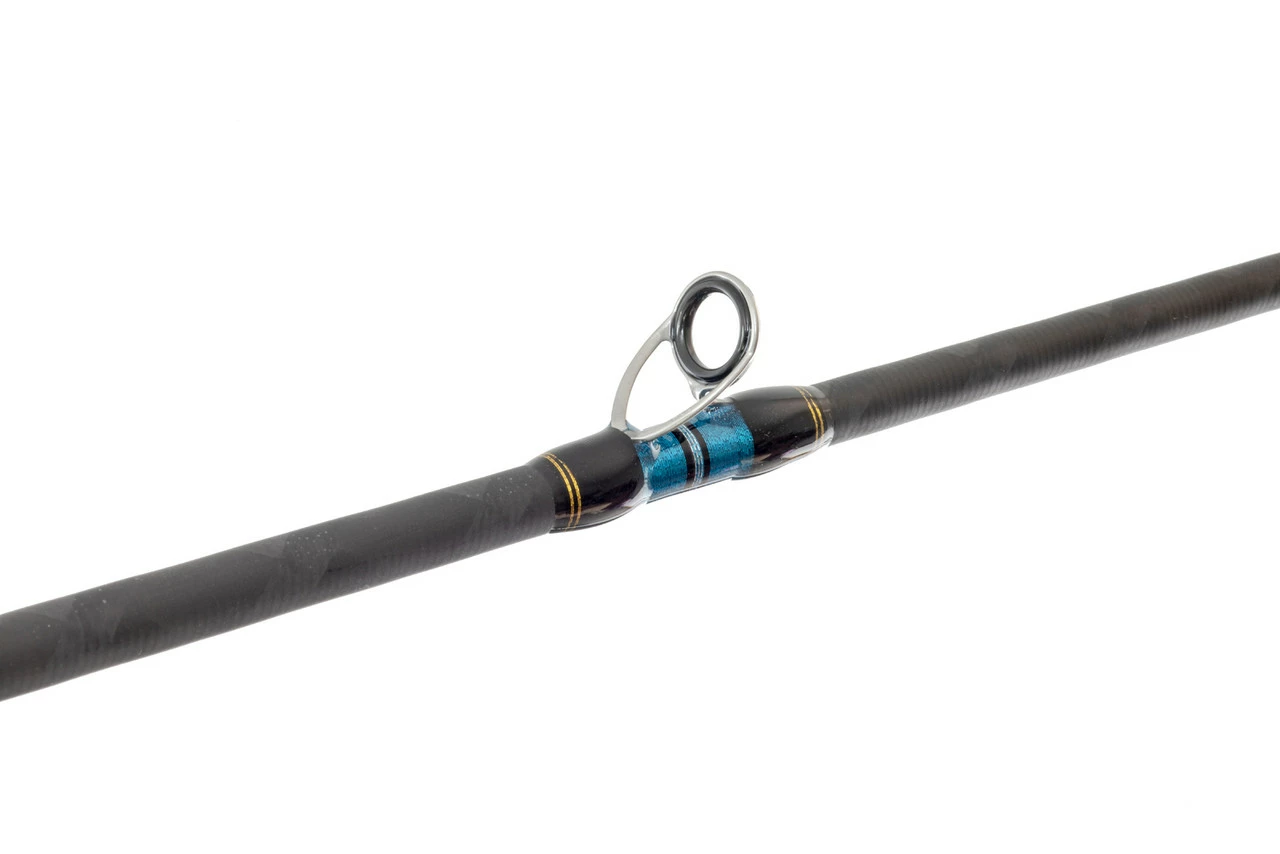 The sleek styling and high-end componentry of the Salty Stage KR-X jig rods complement the exceptional blank quality to make a jig rod that is light and functional. The contoured grips ensure comfortability for long sessions on the jig.