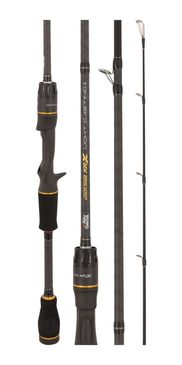 - The next generation of high-performance Salty Stage Light Casting and Jigging rods have arrived! Featuring Tetra Axial high modulus carbon, these rod deliver powerful ultralight blanks with higher break strengths, along with improved impact and fracture resistance. Salty Stage KRX Light Casting and Jigging performance isnt only in the blank construction, with Fuji SiC guides across the range in KR, KL-H & KL-M high frames used throughout for optimum line management. All models are fitted with Fuji reel winches and contoured EVA grips to make the KRX series one of Abu Garcias most comfortable and ergonomic rod ranges.