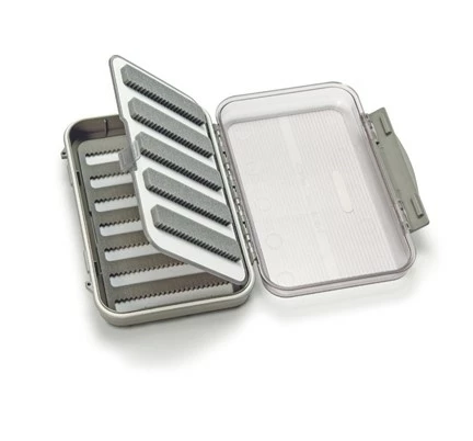 Waterproof Fly Case with 1 Micro Slit Foam, with 7 pockets on it plus additional swing leaf, one side containing 5 pockets of micro slit foam and the other side is flat foam.