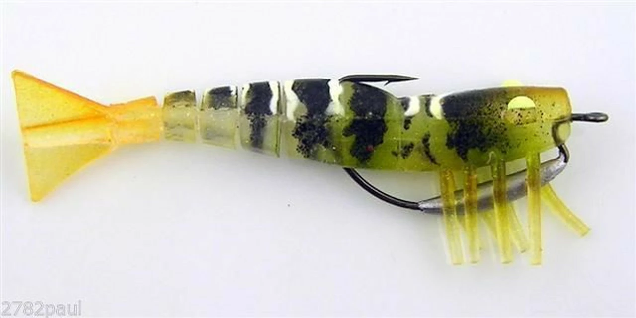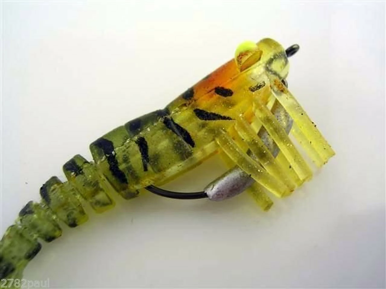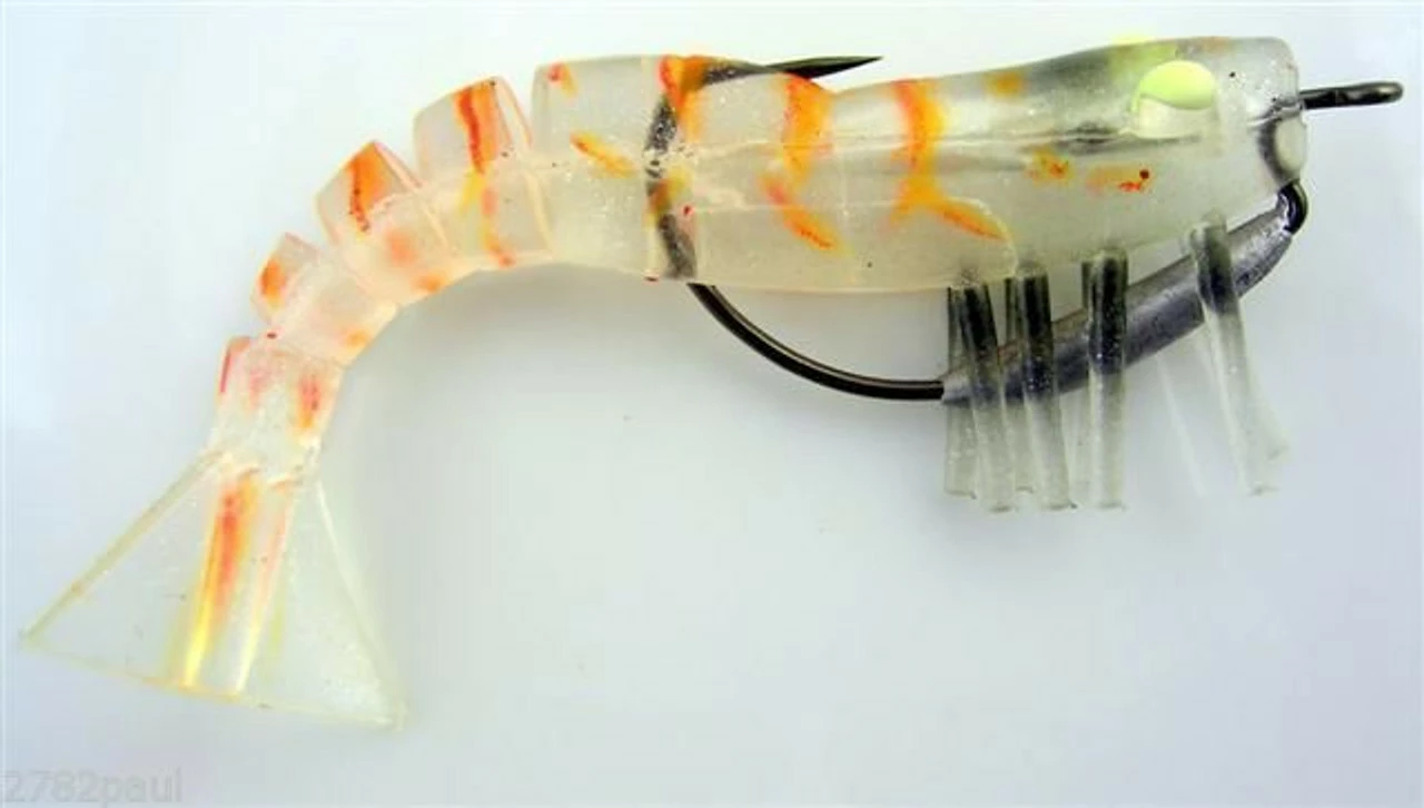 The Live Shrimp can be rigged on the supplied weed less worm hook or on a conventional jig head for open area fishing and the lumo eyes and segmented tail provide even further attraction while this lure is being used.