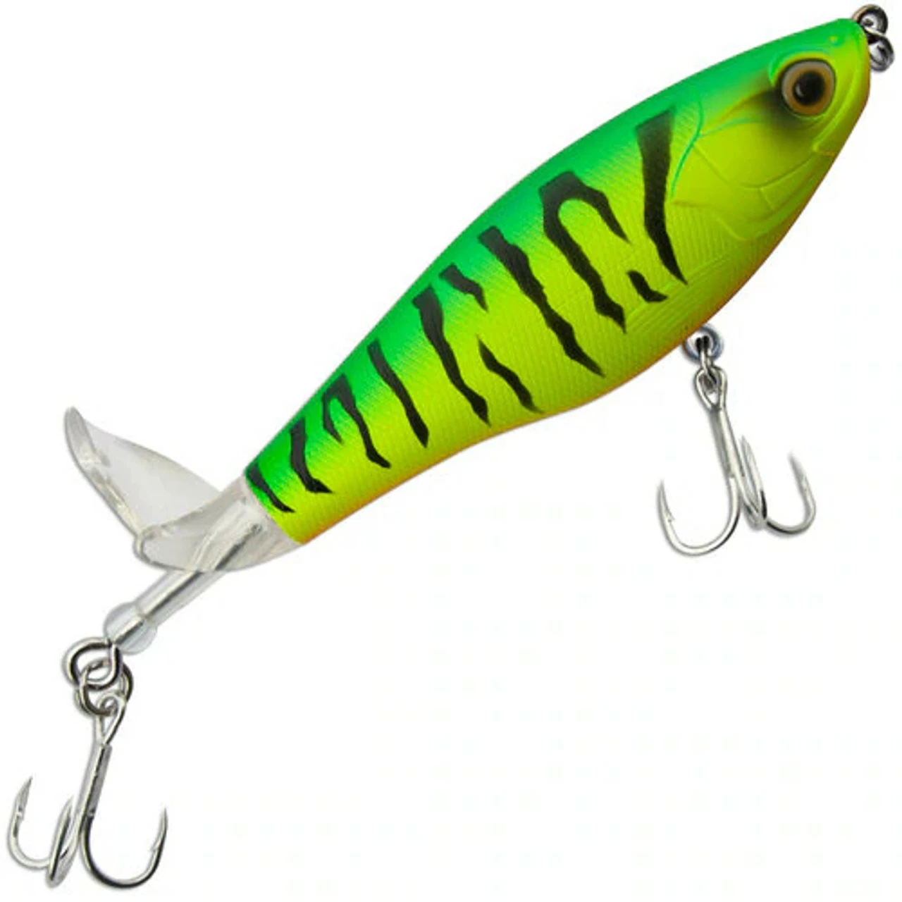 - Prop fizz tail works as a supplementary fish attractor. When retrieved, the prop starts to spin and creates a medium level of water disturbance. Offering additional attraction will grab the attention of fish that might be deep down in the snags.